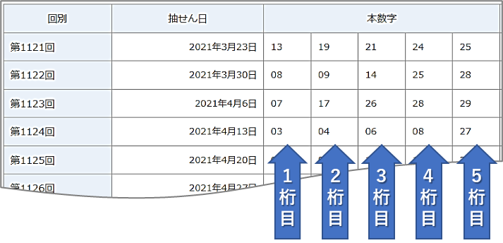 「前回ポジション」とは、予想作業テーブルの一番左端の列。前回はこの位置にあった数字がヒットしたと、「ヒットした数字があった位置×5カ所」を記録した要素である。